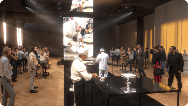 Tout, dans la scénographie et les éléments visuels, s’harmonisait avec l’identité du Groupe Lagardère, offrant aux participants une expérience cohérente et percutante.